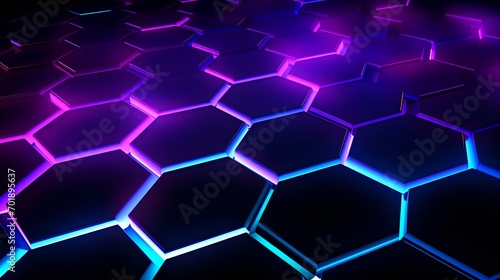 The watermark will not be included on Canvas Print.: Colorful neon glowing hexagonal futuristic pattern - (generative ai) -