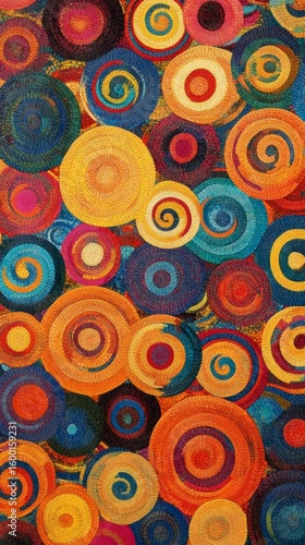 The watermark will not be included on Canvas Print.: Colorful pattern of circles and spirals