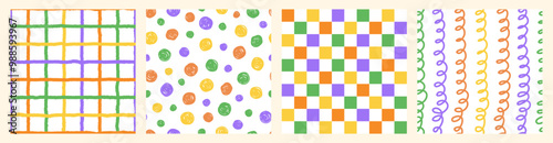 Canvas Prints colorful seamless pattern set of hand drawn curved checkered lines, polka dots and strip. trendy des