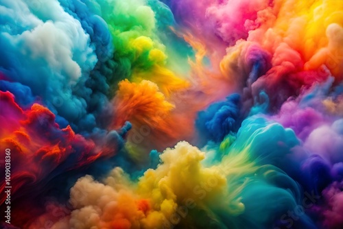 The watermark will not be included on Canvas Print.: Colorful smoke mixing and swirling in dynamic display