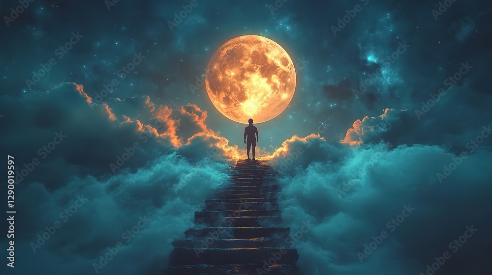 Canvas Prints conceptual image of a man climbing a ladder toward a full moon - Canvas Prints Canvas Prints conceptual image of a man climbing a ladder toward a full moon - Canvas Prints