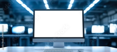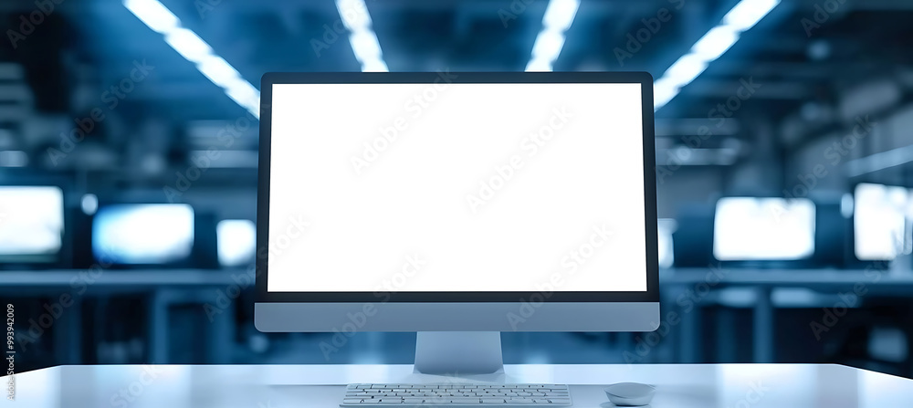 Canvas Prints contemporary office setting featuring a modern led computer screen mockup with a transparent png dis