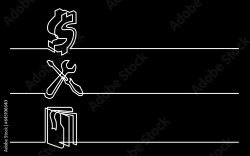The watermark will not be included on Canvas Print.: Continuous line drawing vector illustration with fully editable stroke of business icons banner lett