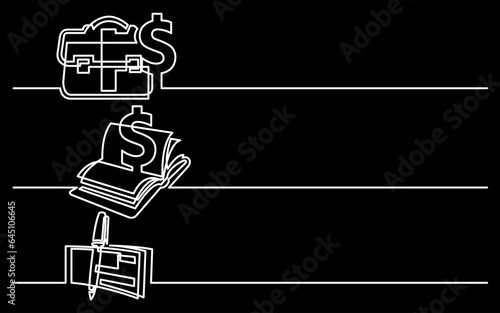 The watermark will not be included on Canvas Print.: Continuous line drawing vector illustration with fully editable stroke of business icons banner lett