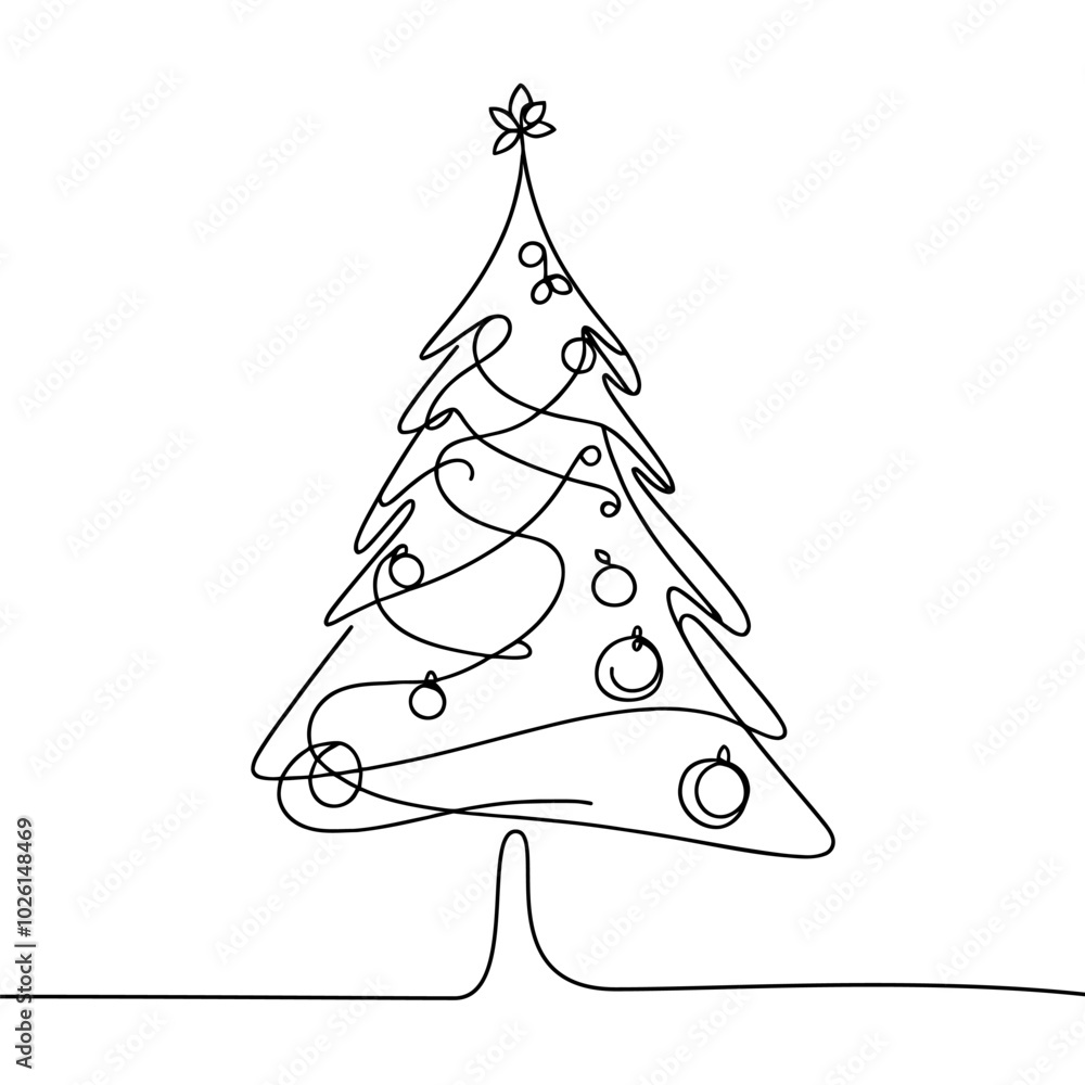 The watermark will not be included on Canvas Print.: Continuous linear drawing of christmas tree - one line drawing christmas tree - christmas tree in one