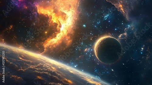 Canvas Prints cosmic nebula and celestial planet: a breathtaking view of interstellar wonders - Canvas Prints Canvas Prints cosmic nebula and celestial planet: a breathtaking view of interstellar wonders - Canvas Prints