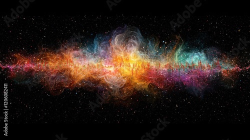 The watermark will not be included on Canvas Print.: Cosmic nebula swirls in a universe of vibrant colors and starlit dust