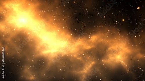 The watermark will not be included on Canvas Print.: Cosmic nebula with golden hues and distant stars in a dark space background