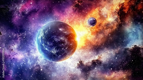 The watermark will not be included on Canvas Print.: Cosmic scene with asteroid and nebula background