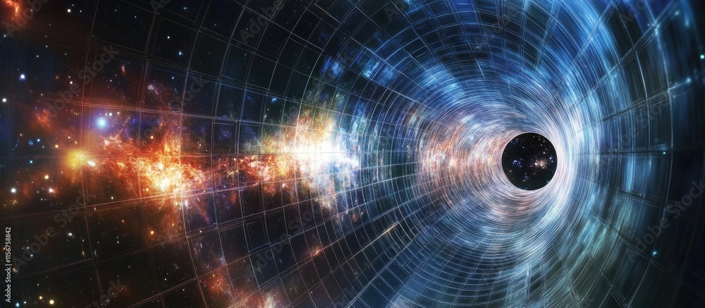 The watermark will not be included on Canvas Print.: Cosmic tunnel of infinite possibilities with black hole and space for text overlay