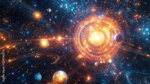 Canvas Prints cosmic universe with bright stars and orbiting planets in space - Canvas Prints Canvas Prints cosmic universe with bright stars and orbiting planets in space - Canvas Prints