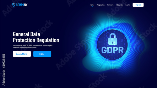 The watermark will not be included on Canvas Print.: Creative landing page with illustration of glowing security lockfor gdpr concept -