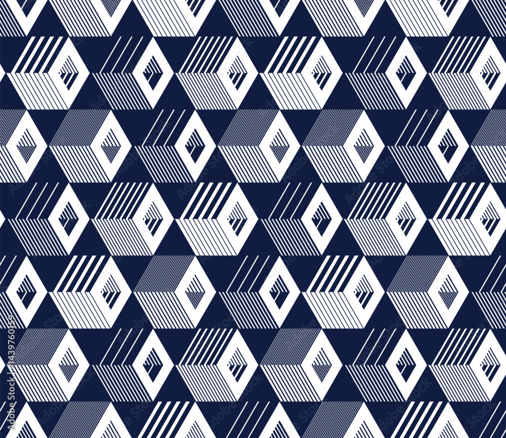 Canvas Print : Cubes abstract background, seamless pattern with 3d blocks, geometric linear polygon wallpaper, isom