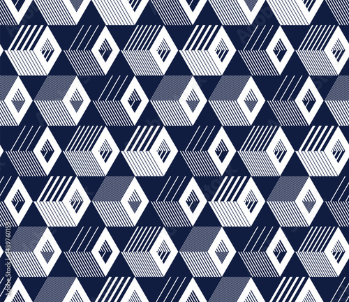 The watermark will not be included on Canvas Print.: Cubes abstract background, seamless pattern with 3d blocks, geometric linear polygon wallpaper, isom