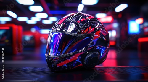 The watermark will not be included on Canvas Print.: Custom racing helmet in neon arcade