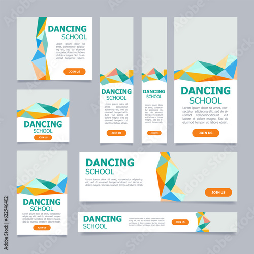 The watermark will not be included on Canvas Print.: Dance school trainings presentation web banner design template - vector flyer with text space - advert