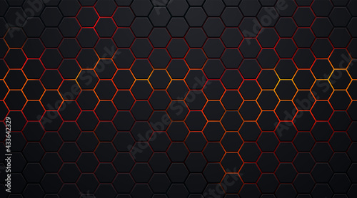 Canvas Prints dark black hexagon pattern on red, orange neon abstract background in technology style. modern futur