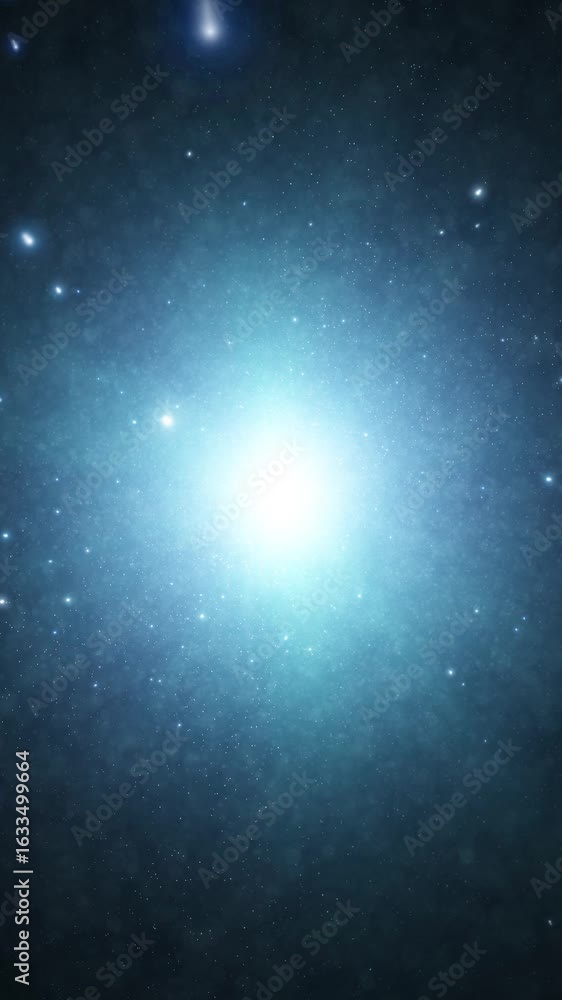 The watermark will not be included on Canvas Print.: Dark blue artistic cosmos with glowing light and flying stars vertical loop animation -