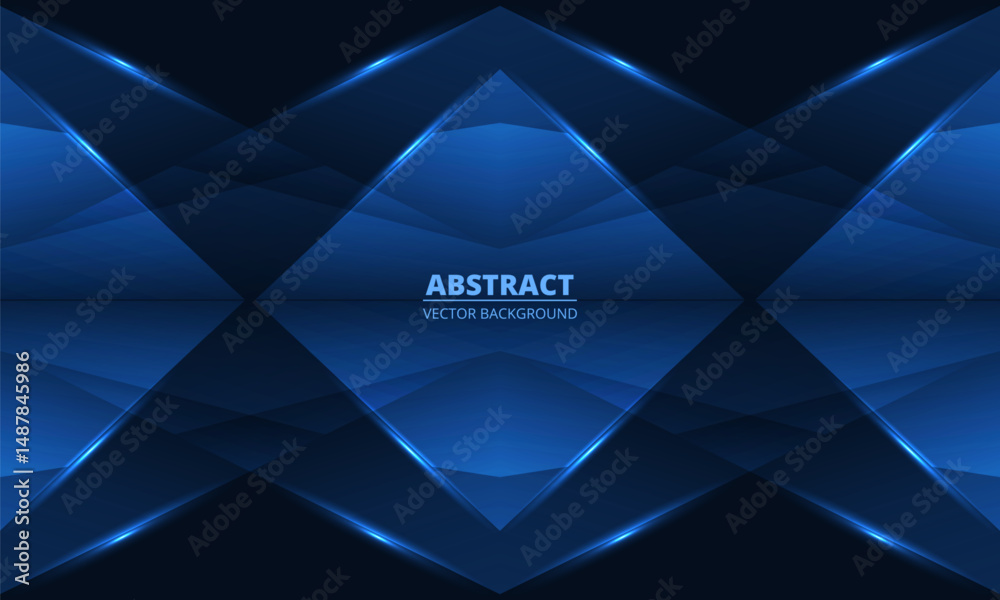 The watermark will not be included on Canvas Print.: Dark blue modern abstract background with geometric shapes and glowing lines - vector illustration
