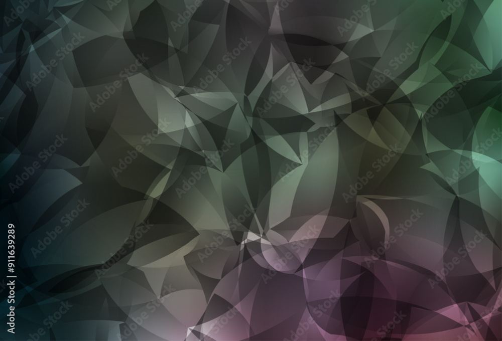 The watermark will not be included on Canvas Print.: Dark pink, green vector gradient triangles pattern -