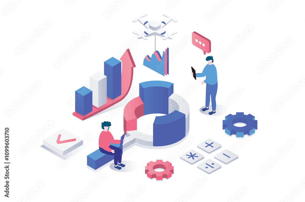 The watermark will not be included on Canvas Print.: Data analysis 3d isometric concept in geometry graphic design for web - people making financial resea