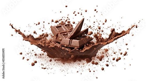 The watermark will not be included on Canvas Print.: Decadent chocolate splash on transparent background - top view 3d rendered digital art