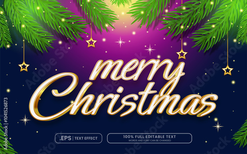 The watermark will not be included on Canvas Print.: Design editable text effect, merry christmas 3d text effect vector illustration with pine branches,