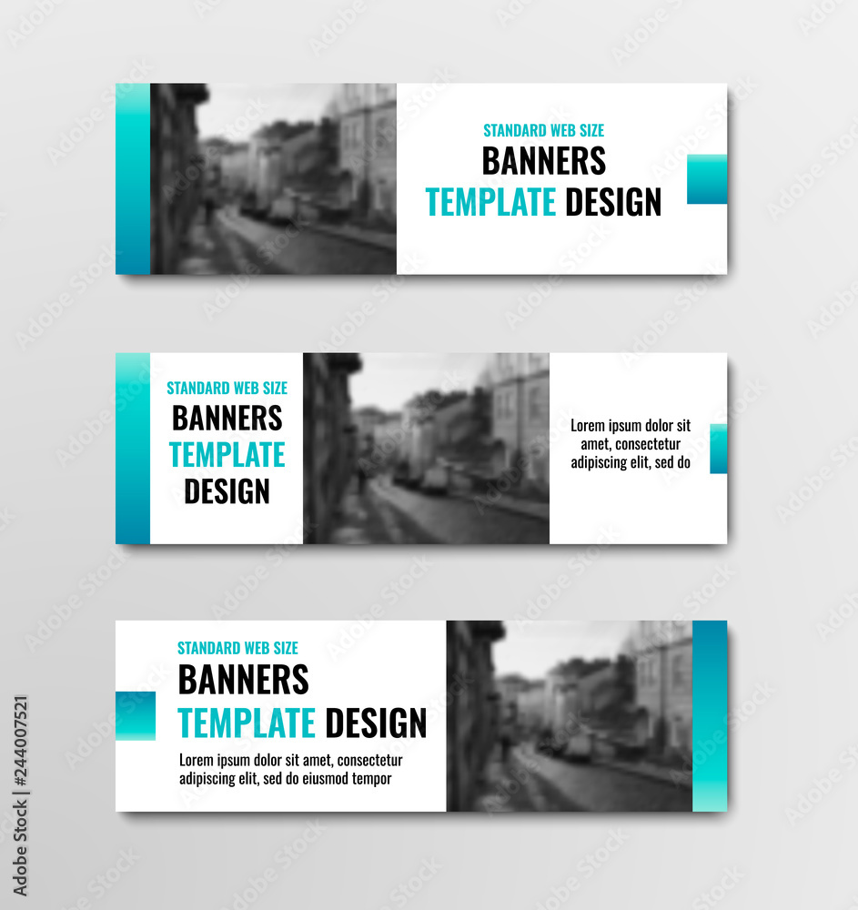 Design of horizontal white banners with blue elements and space for photo - Canvas Print