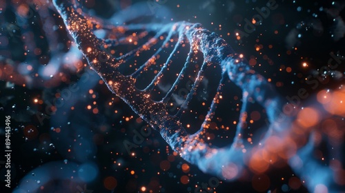 The watermark will not be included on Canvas Print.: Detailed view of dna molecule structure with intricate double helix design on a dark background, hig