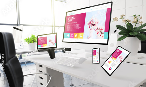Canvas Prints devices floating on mid air mockup showing awesome responsive design