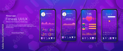 Canvas Print : Different ui, ux, gui screens fitness app and flat web icons for mobile apps, responsive website inc