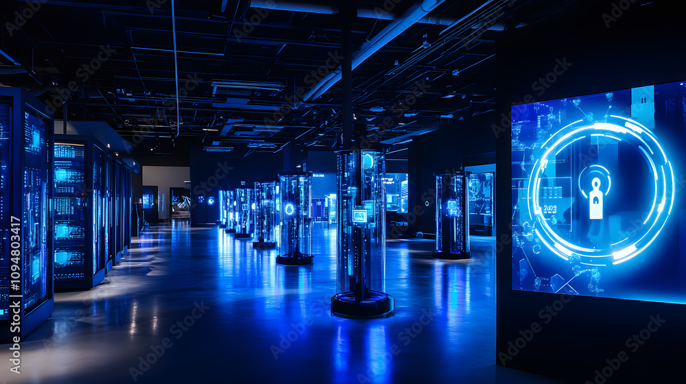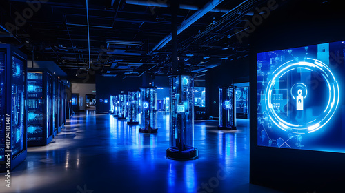 Canvas Prints digital illustration of cybersecurity and data centre protection. shield icon with a padlock symbol
