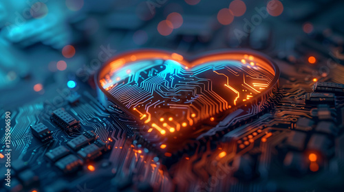 Canvas Prints digital love concept: a heart-shaped object on a complex electronic board illuminated with vibrant o - Canvas Prints Canvas Prints digital love concept: a heart-shaped object on a complex electronic board illuminated with vibrant o - Canvas Prints