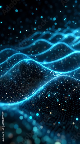 The watermark will not be included on Canvas Print.: Digital technology abstract wave particle illustration poster background