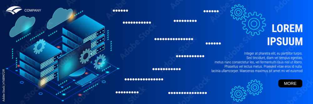 The watermark will not be included on Canvas Print.: Digital technology banner vector design template - data center, storage, web server, hosting modern 3