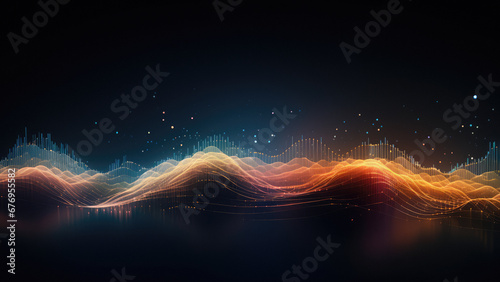 The watermark will not be included on Canvas Print.: Digital technology landscape with chart wave