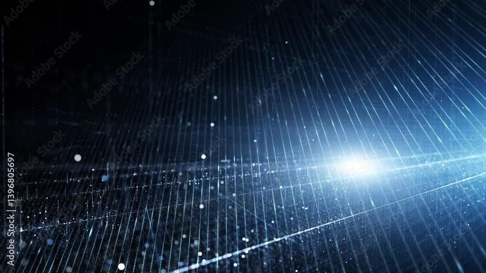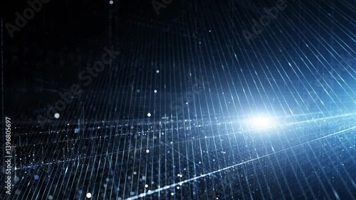 The watermark will not be included on Canvas Print.: Digital technology lines and dots motion with flickering blue light animation background -