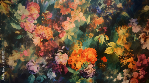 The watermark will not be included on Canvas Print.: Digital textile print pattern plants and flowers abstract graphic poster background