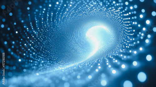 The watermark will not be included on Canvas Print.: Digital vortex: abstract swirling blue light tunnel of particles - futuristic technology, data stream