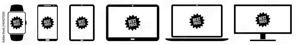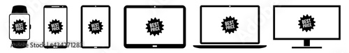 The watermark will not be included on Canvas Print.: Display best price label badge price tag sticker icon devices set | web screen device online | lapto