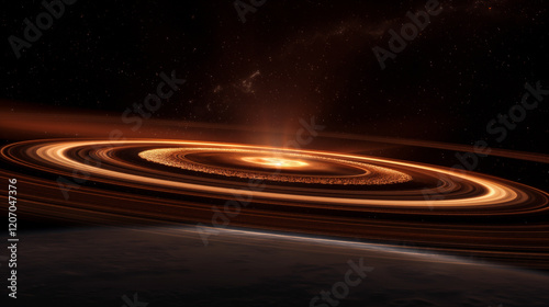Canvas Print : Distant planet with stunning rings and cosmic backdrop illuminated by stars - generative ai