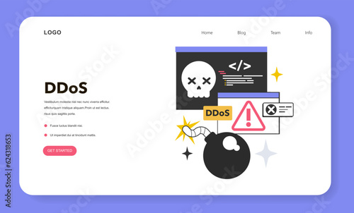The watermark will not be included on Canvas Print.: Distributed denial of service web banner or landing page - cyber-attack