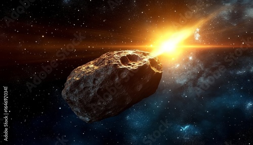 Canvas Prints dramatic dark celestial asteroid plunging through star field in a mysterious space environment