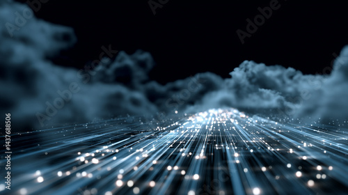 The watermark will not be included on Canvas Print.: Dynamic blue lightning wave in abstract space, programming and code development abstract bright wall