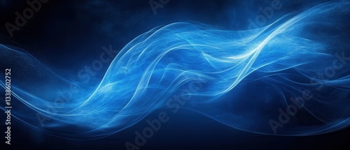 The watermark will not be included on Canvas Print.: Dynamic blue wave energy flowing through dark space abstract background with ethereal light and dept