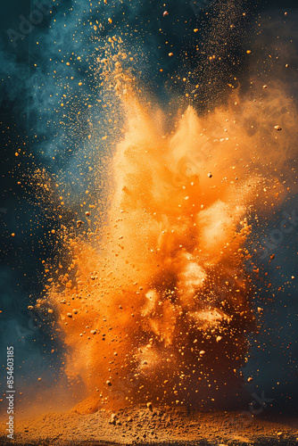 The watermark will not be included on Canvas Print.: Dynamic explosion of colorful powder captured in high-speed