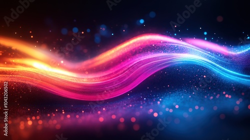 The watermark will not be included on Canvas Print.: Dynamic flowing lines in vibrant neon colors on a dark background, giving a futuristic and stylish e