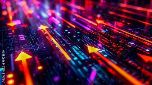 Canvas Prints dynamic neon arrows and lines in a vibrant digital landscape, representing technology, data flow, an