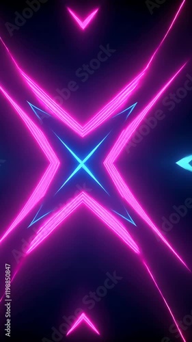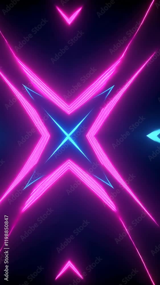 The watermark will not be included on Canvas Print.: Dynamic neon pattern featuring intersecting lines in vibrant pink and blue hues during a nighttime d