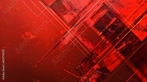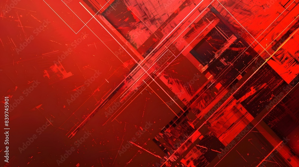 The watermark will not be included on Canvas Print.: Dynamic red abstract background with geometric shapes and lines, featuring layered patterns and text